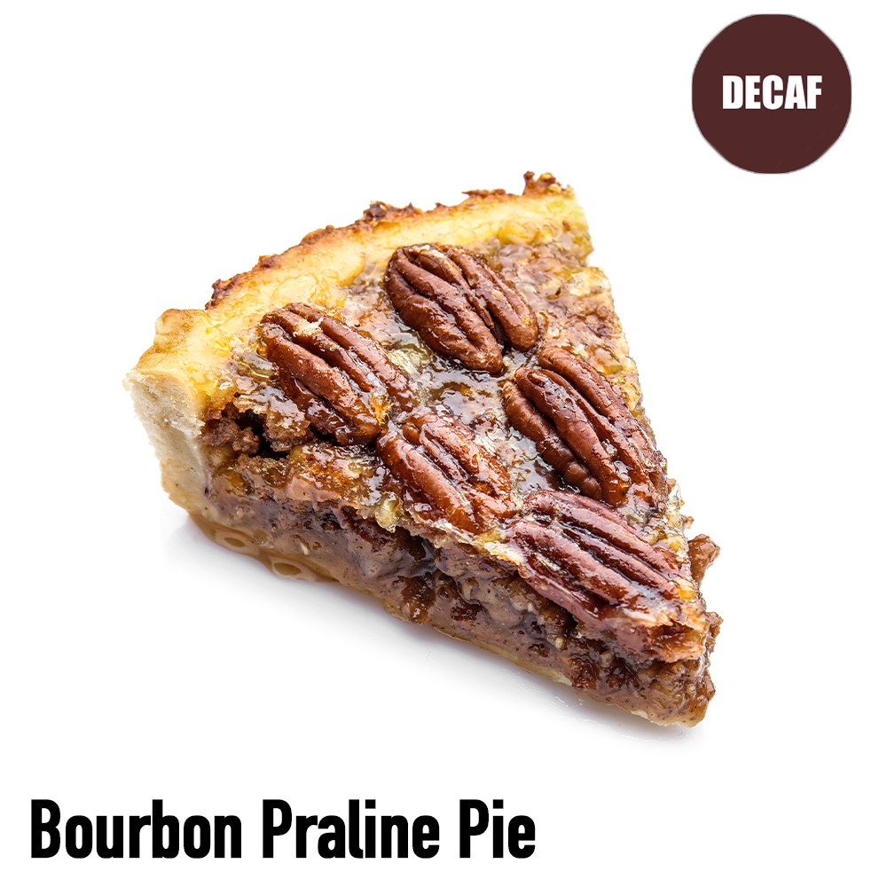 The Bourbon Praline Pie Flavored Decaf Coffee tastes of classic pecan pie, sweet sugar, and bourbon caramel. Certifications: Kosher Process: Washed Process Roast: Medium Roast Additional Information: Decaf Coffee: The Swiss Water Process is a taste-driven, 100% chemical-free decaffeination process that delivers for our Decaffeinated Coffee that is 99.9% caffeine-free while protecting the unique origin characteristics and flavor. Most other processes use chemical solvents, like Methylene Chloride or Ethyl Acetate, to decaffeinate coffee beans.