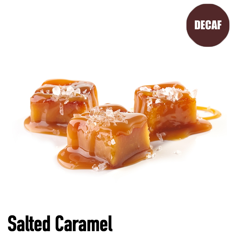 The Salted Caramel Flavored Decaf Coffee tastes of salted butter, slight cream, and sweet caramel. Certifications: Kosher Process: Washed Process Roast: Medium Roast Additional Information: Decaf Coffee: The Swiss Water Process is a taste-driven, 100% chemical-free decaffeination process that delivers for our Decaffeinated Coffee that is 99.9% caffeine-free while protecting the unique origin characteristics and flavor. Most other processes use chemical solvents, like Methylene Chloride or Ethyl Acetate, to decaffeinate coffee beans.